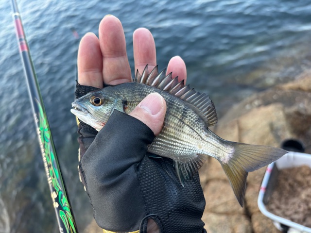 ワッペンサイズ(笑)良型のチヌはやる気あるヤツが浮いてきて釣れる感じでした。