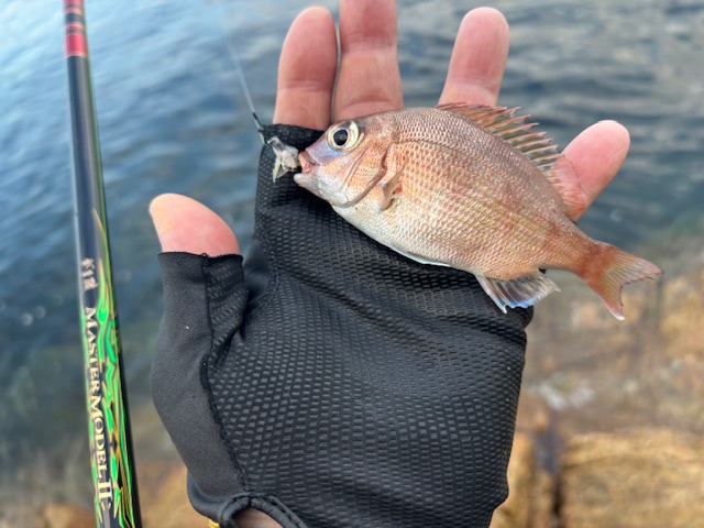 朝は釣れることは釣れるが手のひらどころかワッペンサイズが多い。そしてトビコン遠投はキレイにアタリを捉える(笑)それに混ざってチャリコ、フグ、キュウセン…etc