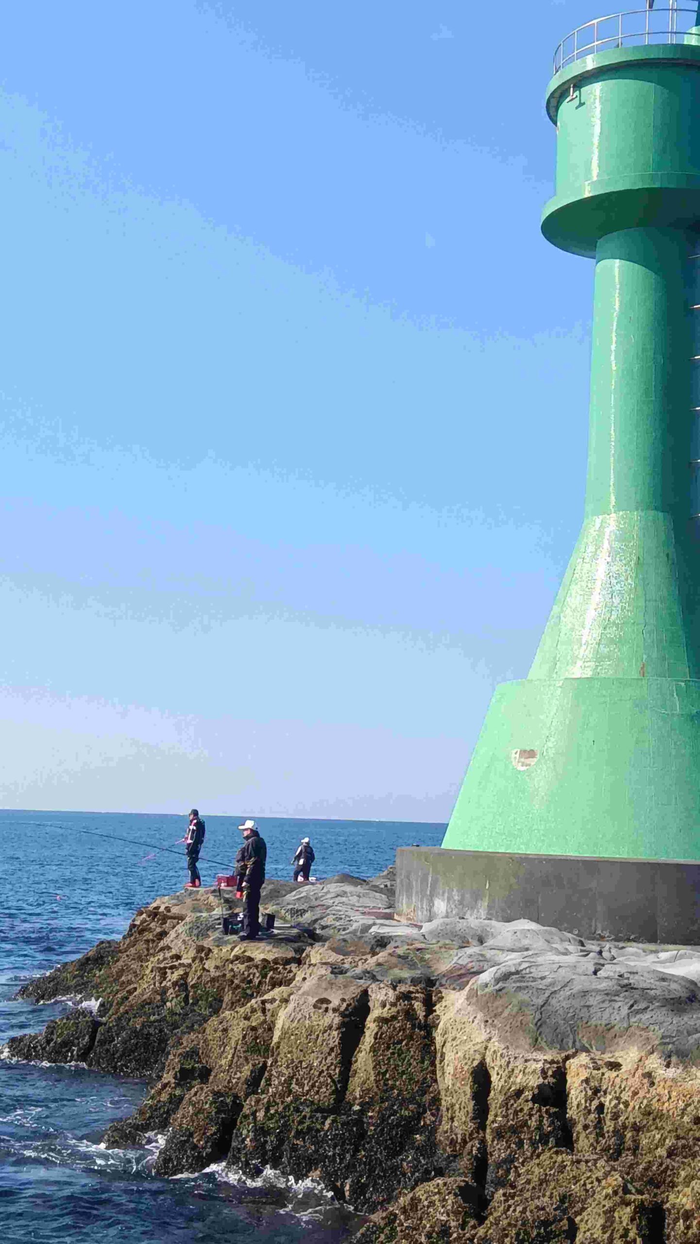 上がってきたのは尾長グレ30センチ、入れ食いかと思いきや、磯に降りた4名全員餌が残る。こんな時は棒ウキと思いと思いトビコン遠投に変更。