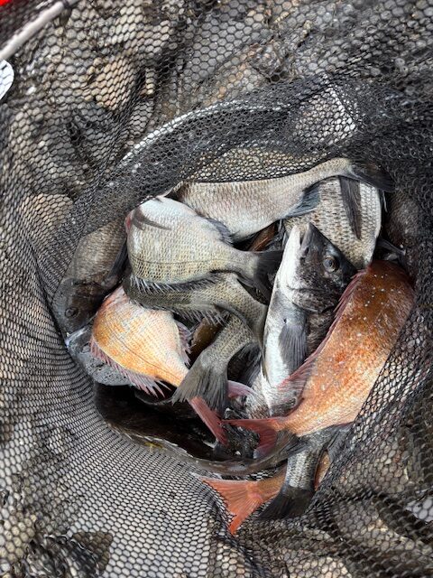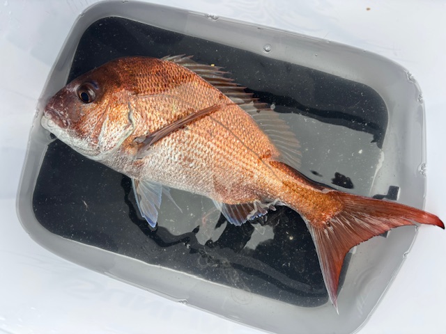 今後、強い味方になると確信しました。潮は左右にフラフラしながら時々強い流れになりながら、それにあわせてトビコンの浮力を変えていきます。ウキを簡単に変えれるのも棒ウキのメリットでもあります。ハイブリッドクロスとオキアミをローテーションしながら数を伸ばせました。最後の最後に強い引きを見せてくれたのは50cm位の真鯛に満足し納竿としました。